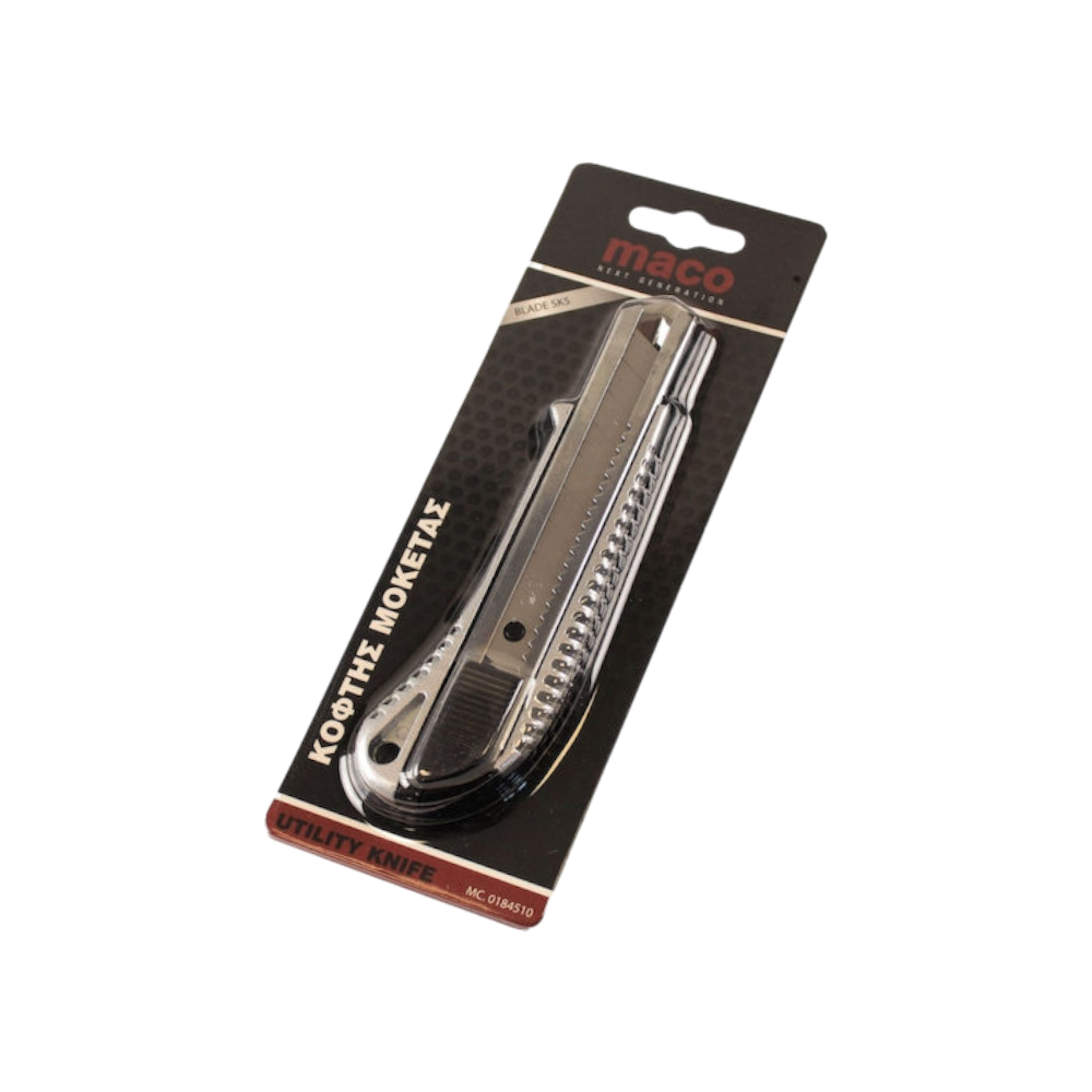 Το μαχαίρι μοκέτας διαθέτει σώμα αλουμινίου με ανάγλυφη επιφάνεια για καλύτερο κράτημα. Περιλαμβάνει μεταλλικό οδηγό για τη λάμα, που διευκολύνει την κίνηση της. Η αντικατάσταση της λάμας είναι γρήγορη και εύκολη από το πίσω μέρος του εργαλείου.