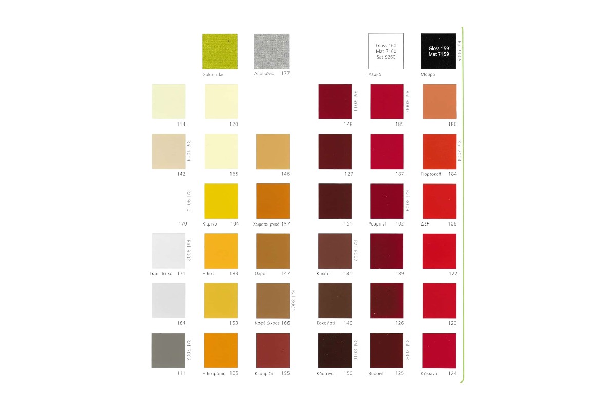 Aπόχρωση | 117, 120, 124, 140, 144, 145, 170, 177, 179, Λευκό Γυαλιστερό 160, Μαύρο Γυαλιστερό 159, Μαύρο Ματ 7159, Μαύρο Σατινέ 9259 |