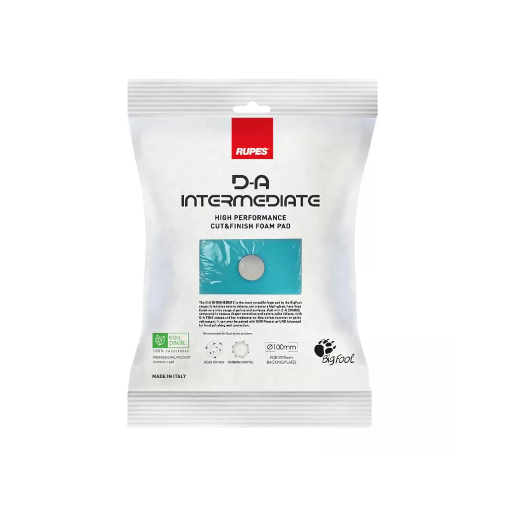Το ενδιάμεσο σφουγγάρι γυαλίσματος Intermediate είναι η νεότερη προσθήκη της Rupes στη σειρά D-A. Τοποθετείται ακριβώς ανάμεσα στο μπλε και κίτρινο προσφέροντας ακόμα μεγαλύτερη ευελιξία. Είναι το πιο ευέλικτο από την σειρά και μπορεί κυριολεκτικά να χρησιμοποιηθεί με όλες τις αλοιφές της σειράς.